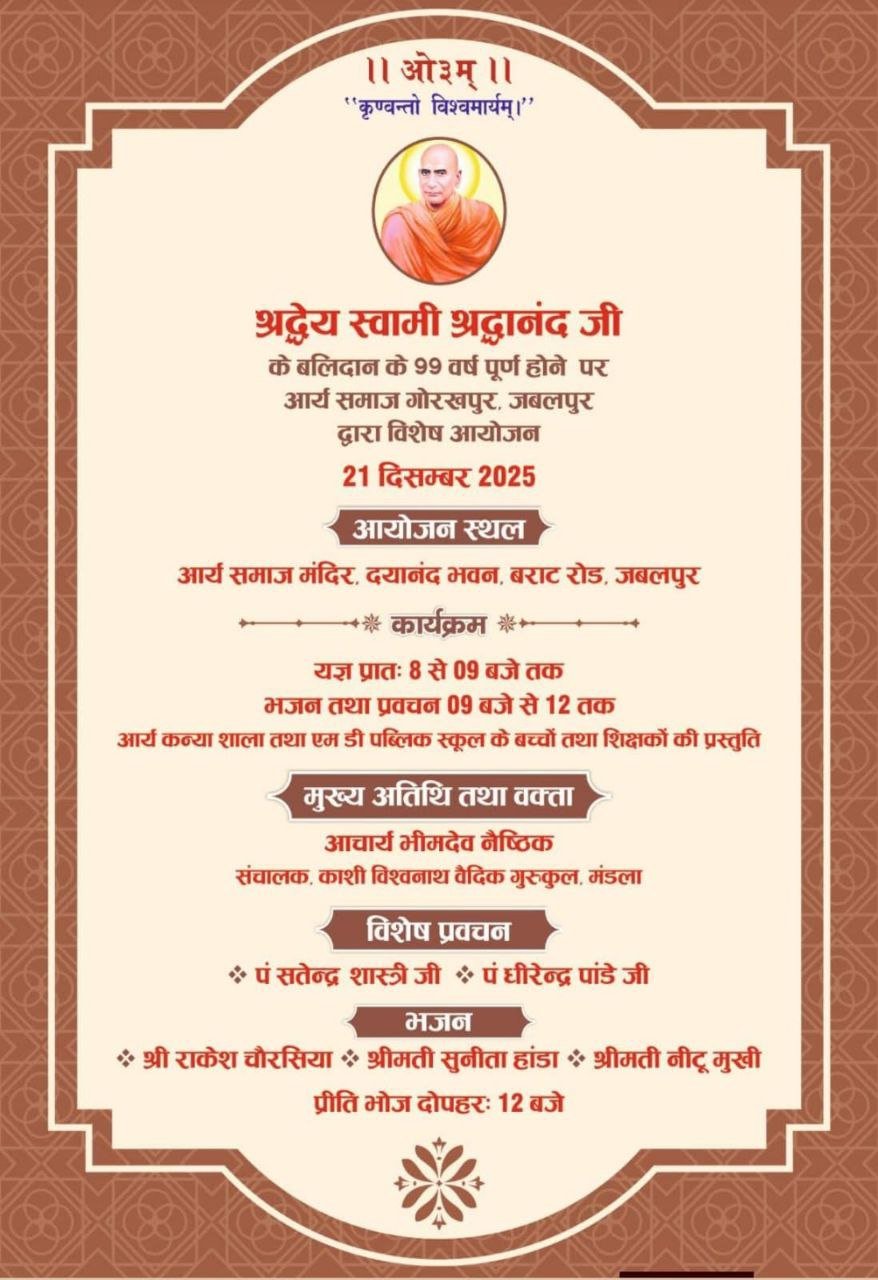 के बलिदान के 99 वर्ष पूर्ण होने के पावन अवसर पर आर्य समाज गोरखपुर, जबलपुर द्वारा विशेष आयोजन