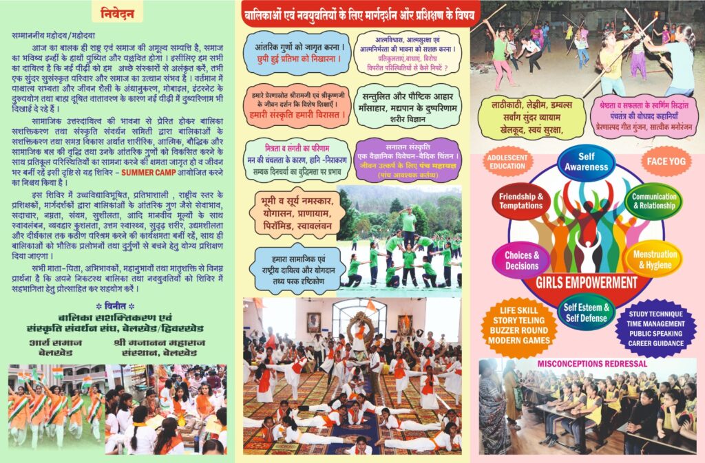 यदि आप अपनी बेटी को एक बेहतर, मजबूत और संस्कारी व्यक्तित्व देना चाहते हैं, तो यह शिविर उसके लिए एक बेहतरीन अवसर है। आइए, मिलकर बेटियों के सपनों को पंख दें और उन्हें सशक्त बनाएं।