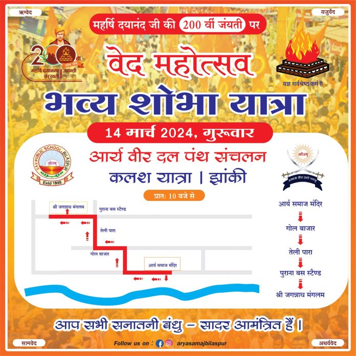 महर्षि दयानंद जी की 200 वीं जंयती पर वेद महोत्सव भव्य शोभा यात्रा ।