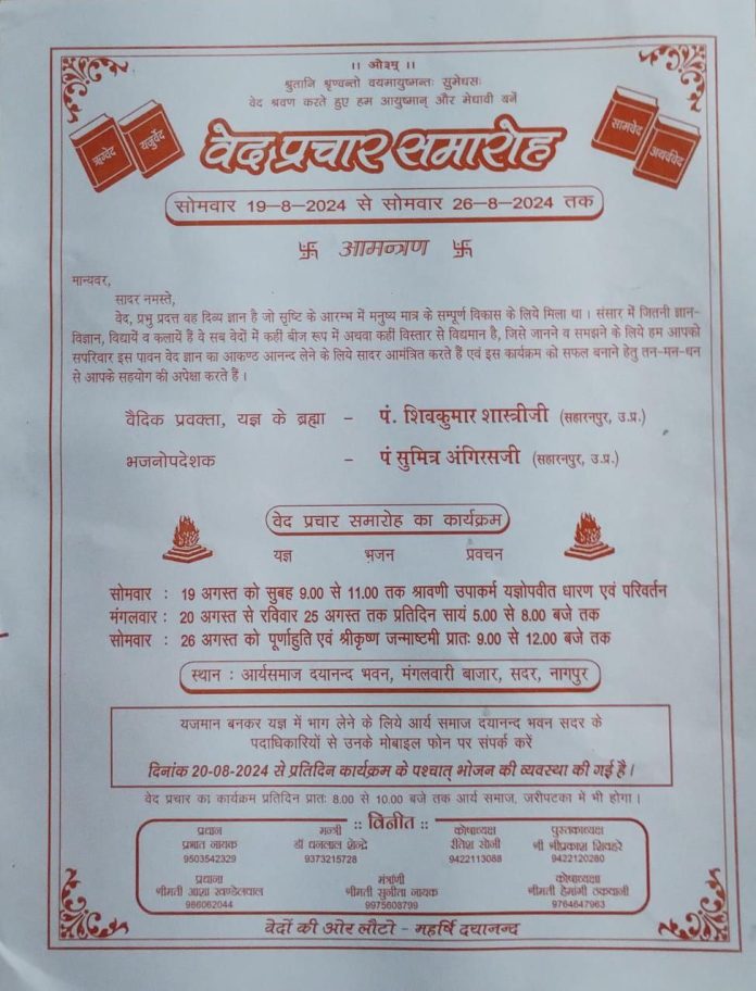 स्थान: आर्यसमाज दयानन्द भवन, मंगलवारी बाजार, सदर, नागपुर