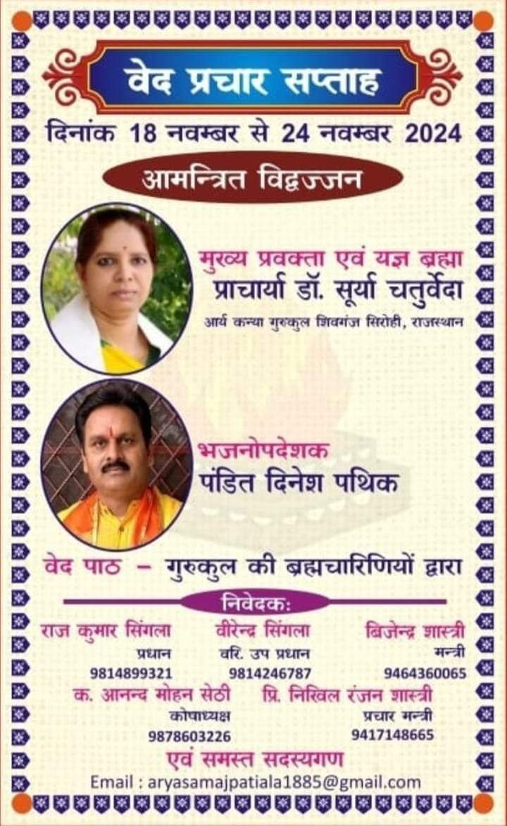 मुख्य प्रवक्ता एवं यज्ञ ब्रह्मा : प्राचार्या डॉ. सूर्या चतुर्वेदा