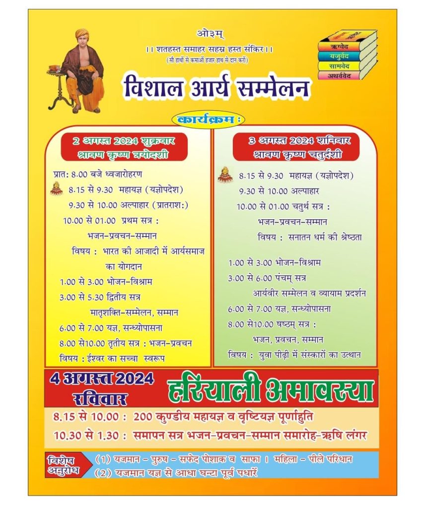 विशाल आर्य सम्मेलन 2, 3, व 4 अगस्त 2024