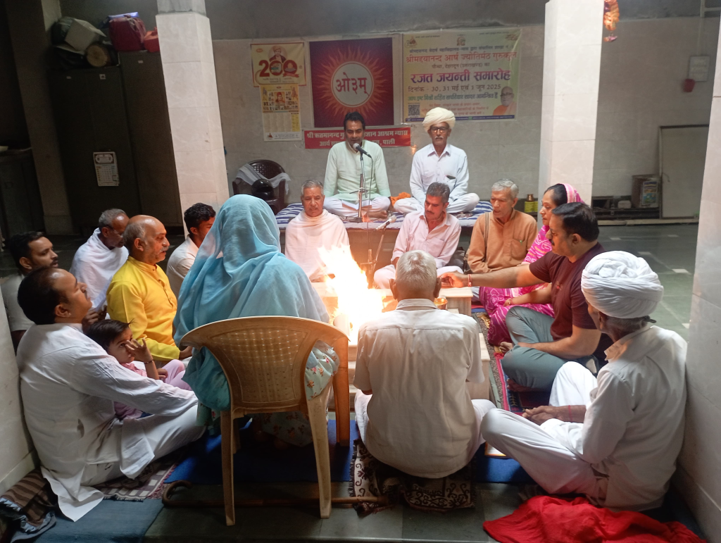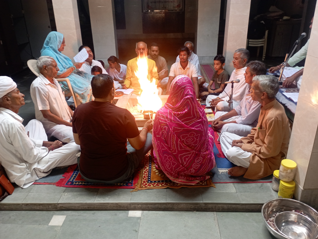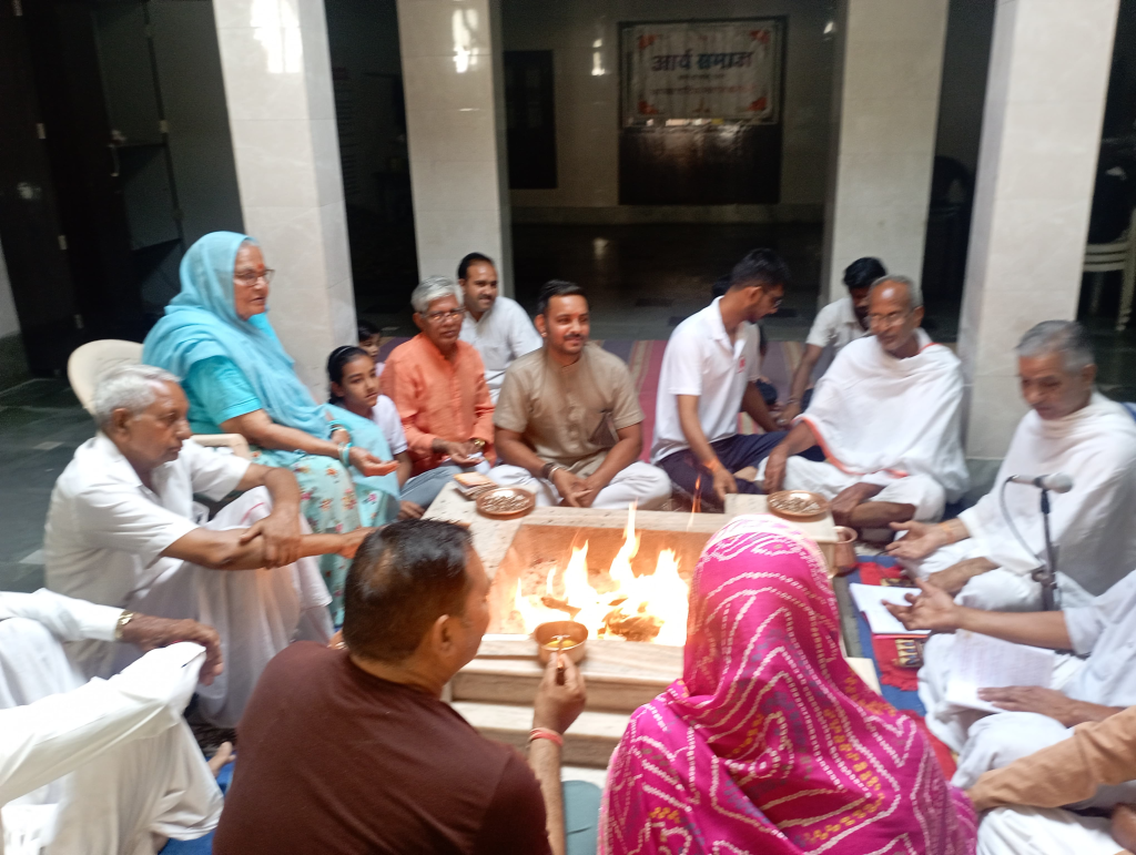 प्रचार मंत्री घेवरचन्द आर्य ने बताया कि इससे पूर्व आचार्य जी के ब्रह्मात्व में गायत्री मंत्र, ईश्वर स्तुति प्रार्थना उपासना मंत्र, स्वास्तिक वाचन मंत्रों के बाद विधिवत हवन में आहुतियां प्रदान कर राष्ट्र की खुशहाली की मंगल कामना की गई। जिसमें देवेन्द्र मेवाडा सपत्नीक मुख्य यजमान बने। बंगाल के निर्दोष हिन्दुओं की हत्या पर गहरा दुःख व्यक्त करते श्रद्धांजलि अर्पित की गई। प्रधान मगाराम आर्य, भजनोपदेशक ज्ञानाराम आर्य, डां गौरव शर्मा ने भजन सुनाया सिद्धार्थ आर्य ने शान्ति पाठ और जयघोष किया। मंत्री विजयराज आर्य ने आचार्य जी का स्वागत कर दक्षिणा भेंटकर धन्यवाद ज्ञापित किया।