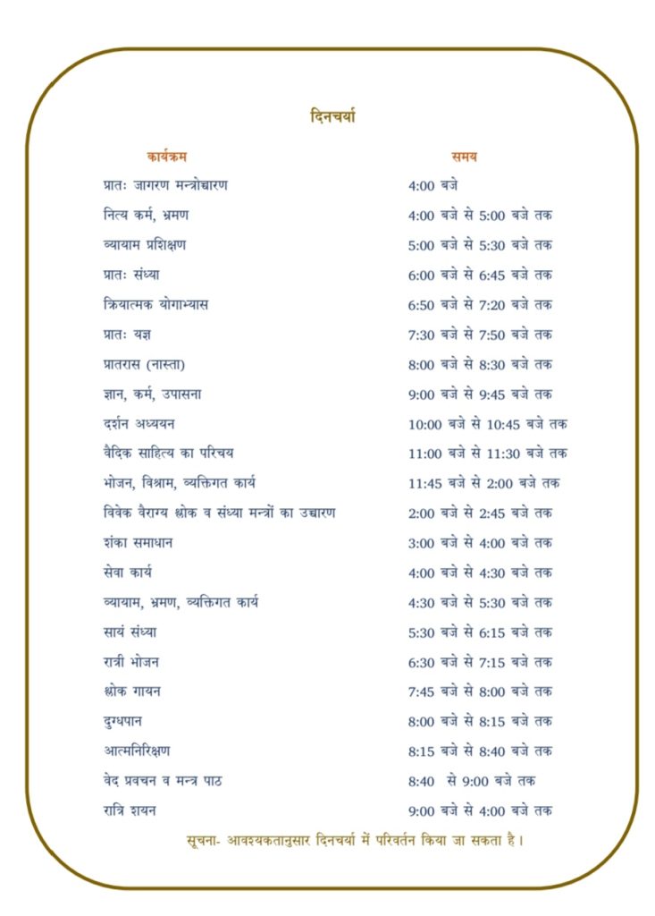 रात्रि शयन – 9:00 बजे से 4:00 बजे तक
