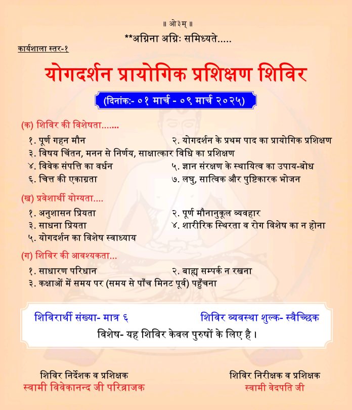 - शिविर निरीक्षक व प्रशिक्षक – स्वामी वेदपति जी