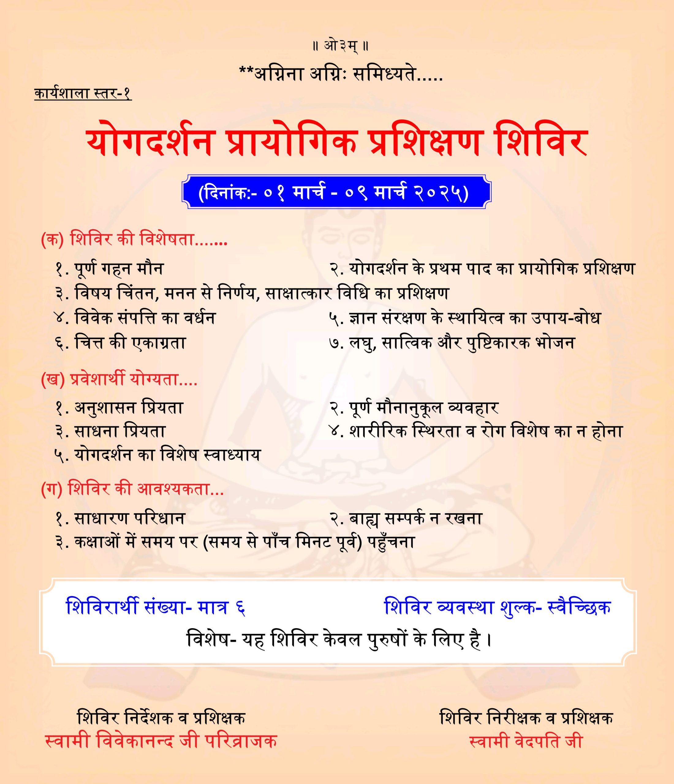 विशेष: यह शिविर केवल पुरुषों के लिए है।