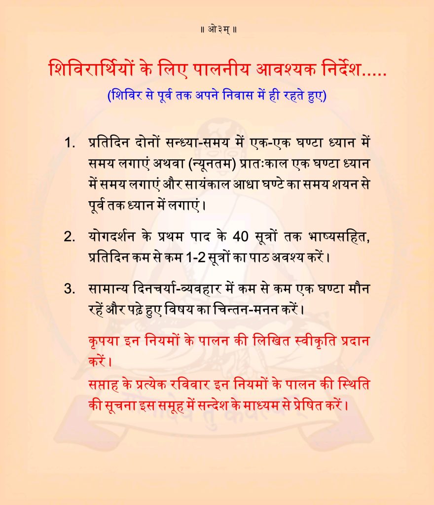 शिविरार्थियों के लिए पालनीय आवश्यक निर्देश