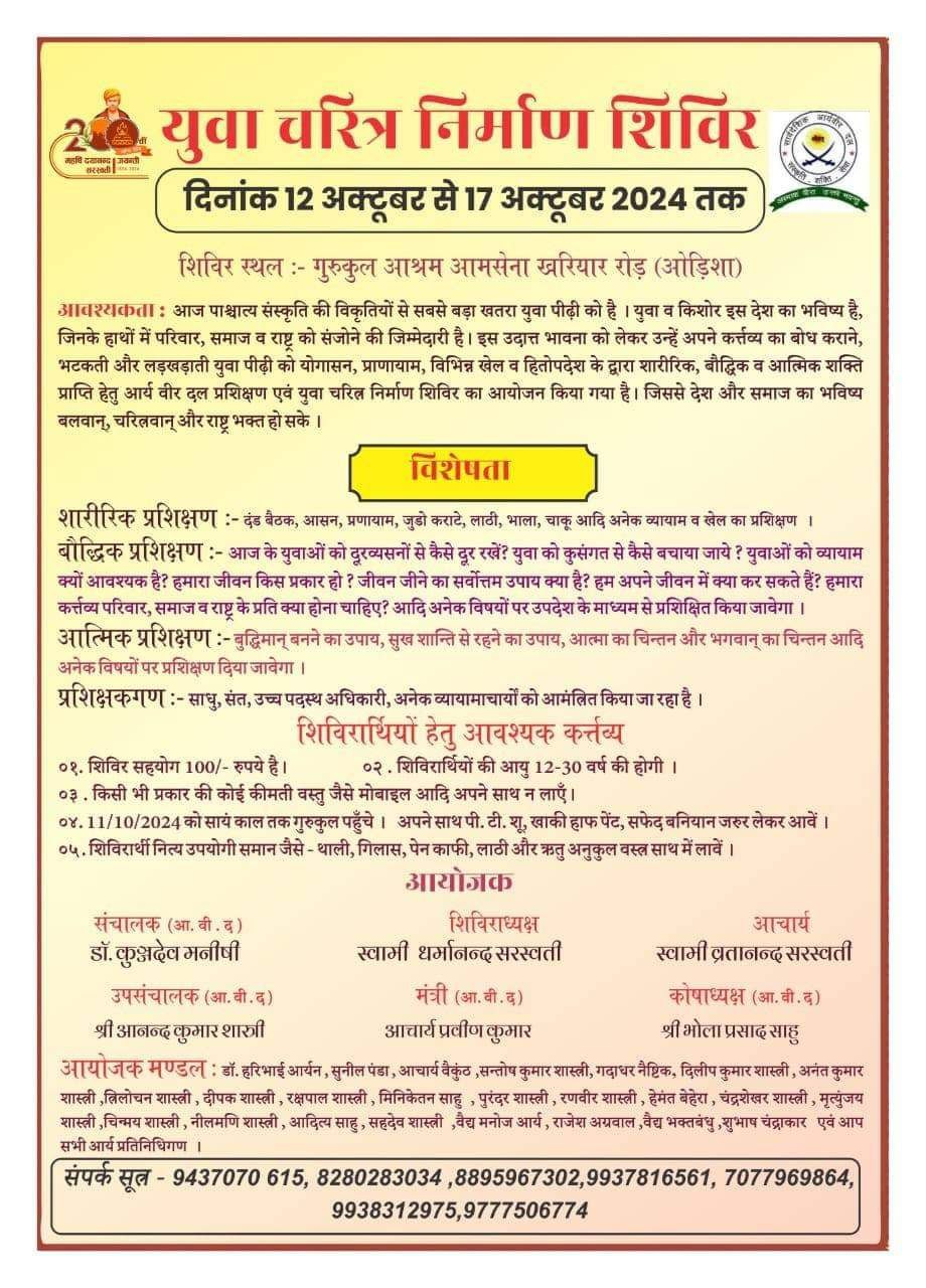 शिविर स्थल :- गुरुकुल आश्रम आमसेना खरियार रोड़ (ओड़िशा)